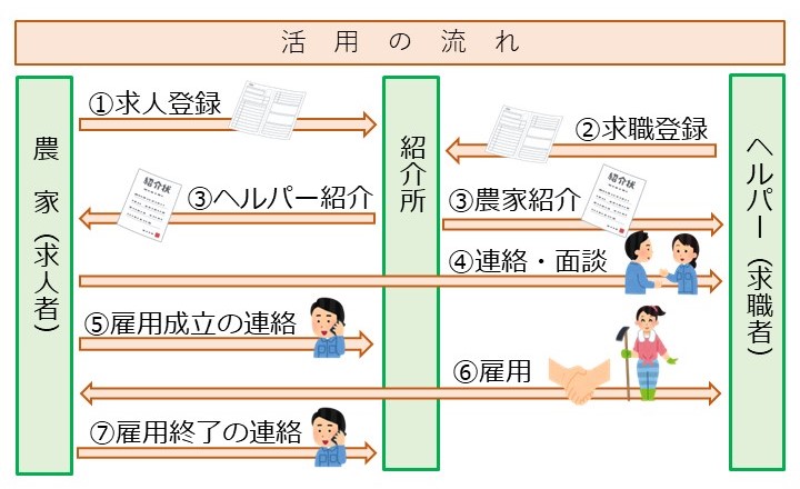 ※お仕事紹介の前には、当課との面談が必要になりますので、一度は産業課までお越しいただく必要があります。面談後、登録完了となります。
